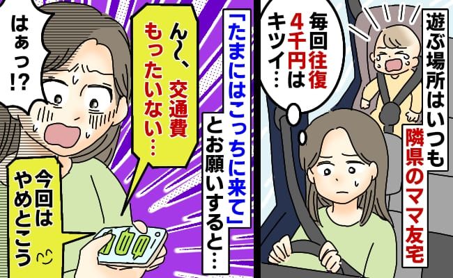 往復4千円かかる隣県のママ友宅にしょっ中呼ばれ…⇒「たまにはこっち来て」と伝えるとまさかの結末に