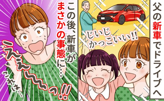 車が大好きな父。こだわりがつまったマニュアルの新車を手に入れ、父と母、私と5歳の娘でおでかけに行ったときのことです。上機嫌の父でしたが、新車がまさかのことになり……!!