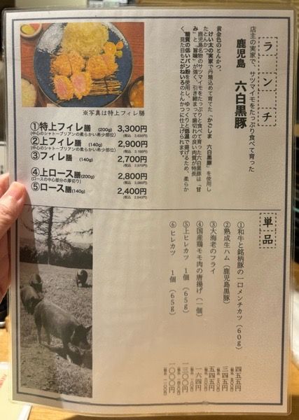 フィレは油が少なくお肉の旨みがしっかり感じられる部位、ロースはお肉の旨みとともに脂の甘みも感じられる部位だそう。 「特上フィレ膳」「上フィレ膳」が人気メニューだと伺い、この日は「上フィレ膳」3,190円をお願いしました。