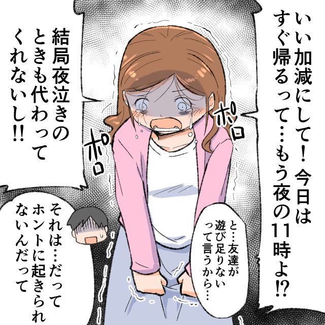 「いい加減にして!今日はすぐ帰るって・・・もう夜の11時よ!?」