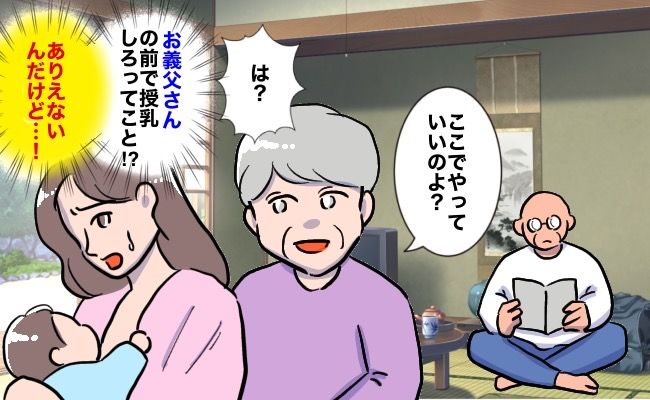 「ここでやっていいのよ?」え?義父もいるのに!?義母がこの部屋で授乳させようとする理由にあ然…!