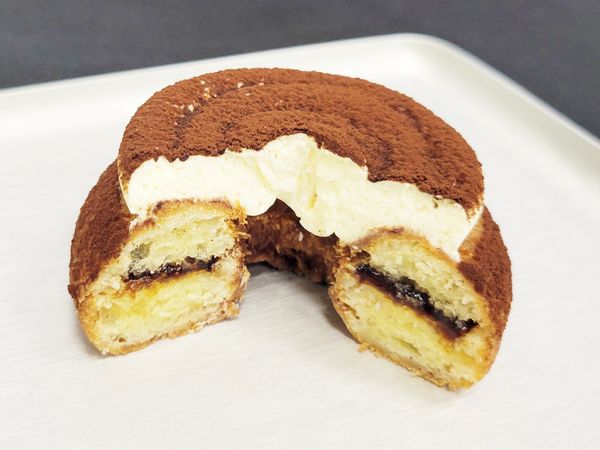 中にエスプレッソフィリングがサンドされています。チーズホイップとココアで、これはもう、ティラミスです。