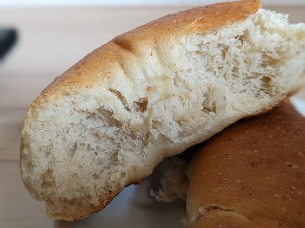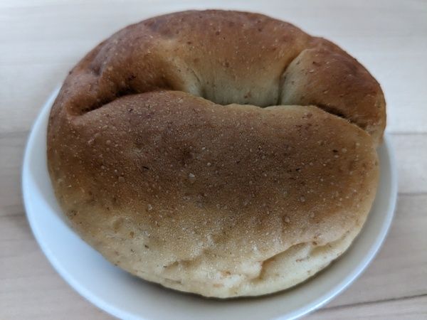 外はカリッと、全粒粉と米粉の入った風味豊かなベーグル。冷めてももっちりとした食感があるので、外出先でもおいしくいただけます。半分にスライスすると、スモークサーモンやチーズ、野菜などを挟むことができるので、簡単にベーグルサンドが作れます。
