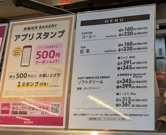 店内にはイートインスペースがあり、こだわりのコーヒーや紅茶、ソフトクリーム、購入したパンなどを飲食できます。