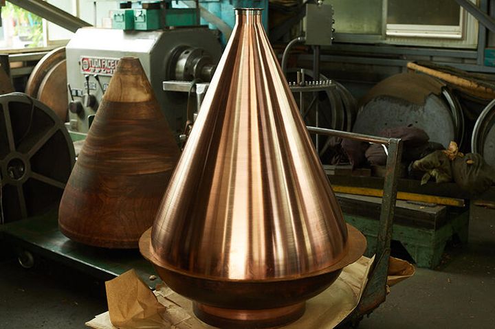 「北軽井沢蒸留所」オリジナルのポットスチルは、付け根がくびれたランタン型のヘッドを持つ。坂本さんが求める繊細な「カーブの美しさ」を可能にしたのは、“へら絞り”と呼ばれる特殊な金属加工技術だ。その製作シーンを現場レポート風に振り返ってみたい。