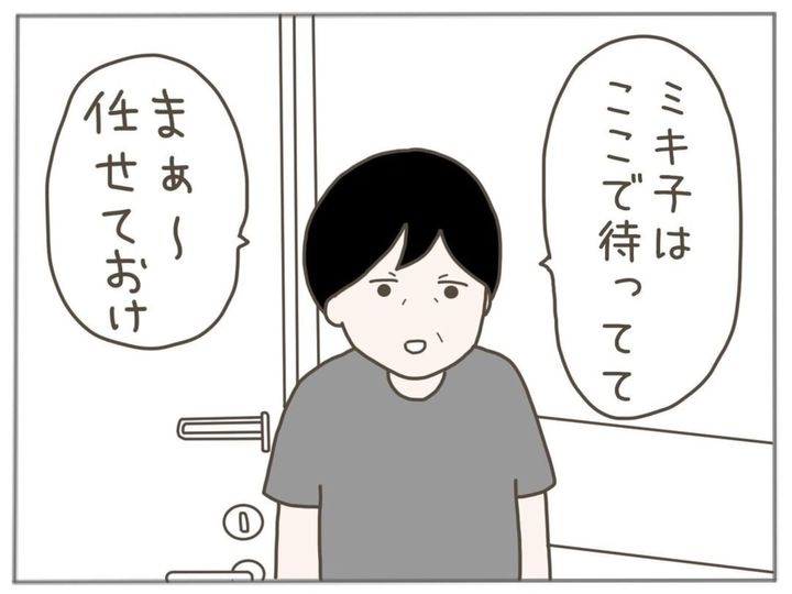 元夫・トモくんの後輩に引きずられ、ついに佐藤くんは退場。トモくんと後輩が佐藤くんを実家まで送ることになりました。そして、3人が消えた扉を呆然と見つめるミキ子さん。こうして、佐藤くんとの怒涛の同居生活は幕を下ろしました。