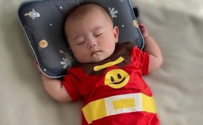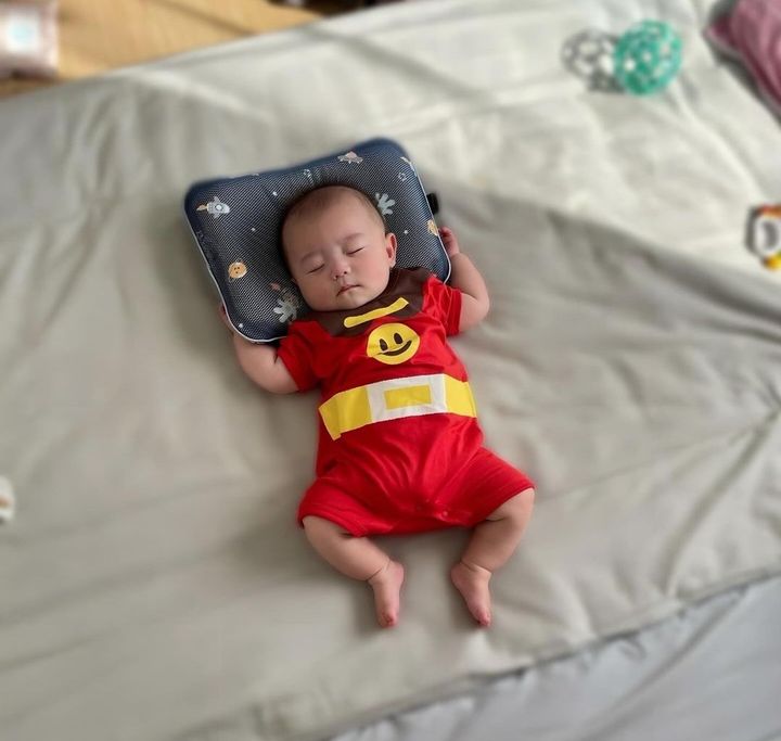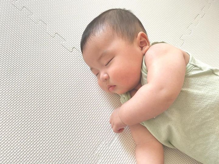 生後5カ月の赤ちゃん。たくさん遊んで疲れたかな?ぐっすり眠っているようです。