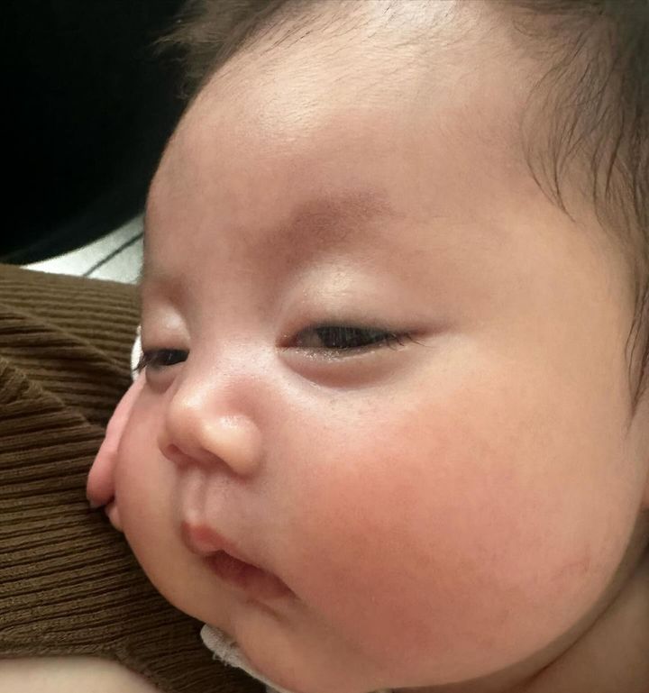 寝る3秒前……。ぷくぷくほっぺがかわいいですよね。