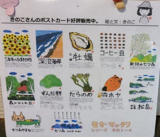 きのこさんの宮城県の観光スポットや特産品などをモチーフにした絵葉書。出すと喜ばれそうですよね。