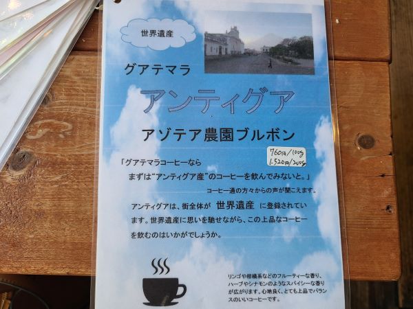 コーヒーのメニューを見ると、説明が詳しく書いてあり、こだわりや真摯なコーヒーとの関わりが感じられました。