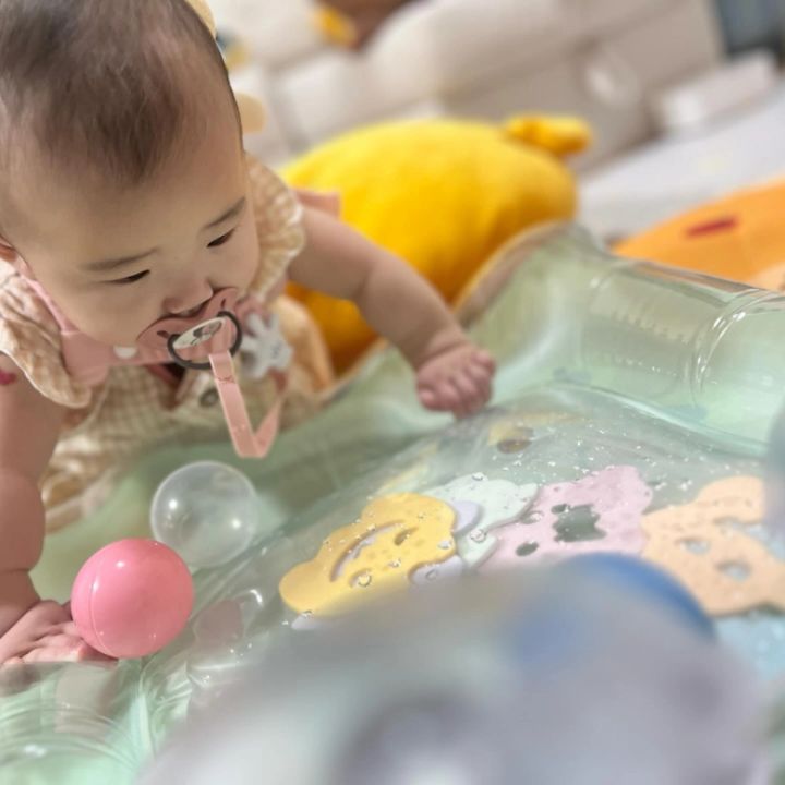 こちらは、小さな赤ちゃんでも水遊びを楽しめる「ウォーターマット」です。マットの中に水が入っているので、室内で遊んでも部屋が汚れず安心。マットを押すと、モンスターがゆらゆら♪かわいい動きに夢中になっちゃいそうです。赤ちゃんの腹ばい練習にもぴったりなアイテムなのだとか。