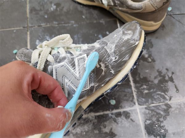 のりマロにしていることで、スニーカーにべったり塗り付けられるので5分放置しても泡が落ちてしまう心配がありません。