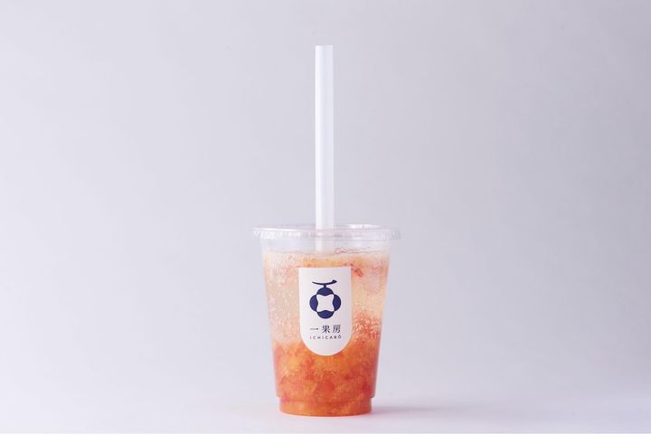 フレッシュジュース『旬の一果』に、特製のホイップクリームと8~10粒くらいのさくらんぼをトッピング。2層仕立ての一果房オリジナルジュースパフェです。