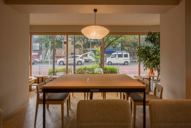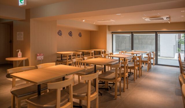 誰でも利用できるラウンジは、通りに向かって大きな窓がもうけられた開放的なスペースです。窓際にはベンチが置かれ、コワーキングスペースとしてはもちろん、宿泊客の憩いの場にもなっています。