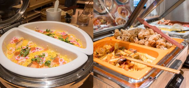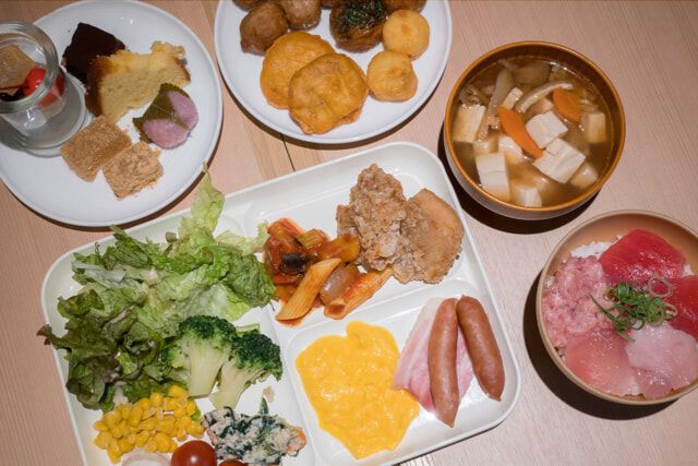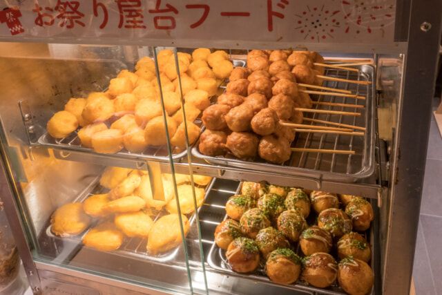 保温されたケースには浅草のお祭りや縁日をイメージした “屋台フード” を並べます。「ミニお好み焼き」や「つくね串」、「チキンナゲット」など、いつもとちがう朝食を楽しめました。