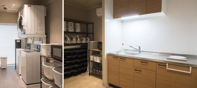 4階には、宿泊者が自由に利用できるゲストキッチンもあり、IHクッキングヒーターを備えるなど、長期滞在にも便利です。