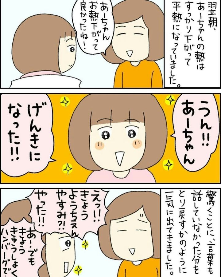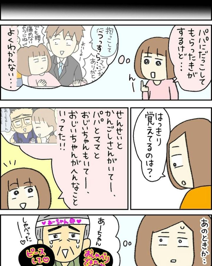 翌朝にはすっかり熱も下がり、退院することになったあーちゃん。ところが「どうして病院にいるの?」と、救急搬送された記憶はまったくありませんでした。