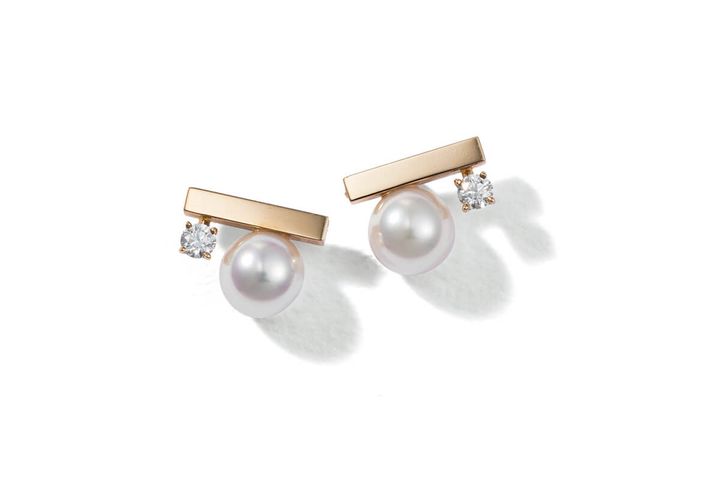 「〝プチ〟バランス クラス」ピアス[K18SG×あこや真珠×DIA]¥316,800/TASAKI