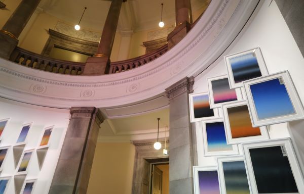 表慶館のエントランスホールは天井まで吹き抜けになっており、そこの丸いドームの天井に向かって飛び立つ鳥のように澁谷翔《日本五十空景》が展示されていました。 初めて単一の展覧会で開催されるメゾン カルティエとカルティエ現代美術財団の2つの歴史を結ぶ澁谷翔のインスタレーションです。