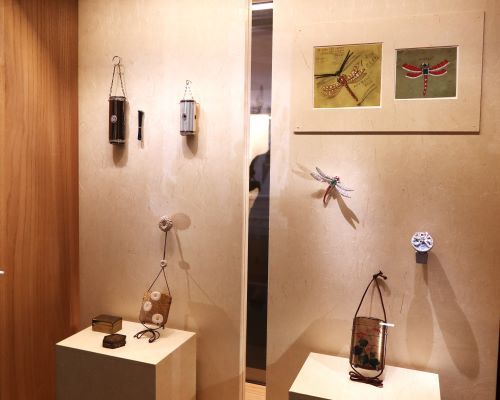 最初の展示会場には、日本の吉祥(きっしょう)のモチーフや文様が散りばめられた時計やブローチ、印籠(いんろう)から着想したというヴァニティケースなどが並びます。 日本では身近で親しみやすい印象を受ける吉祥のモチーフが、カルティエの作品として新たな命を吹き込まれ見事な輝きを放っていました。