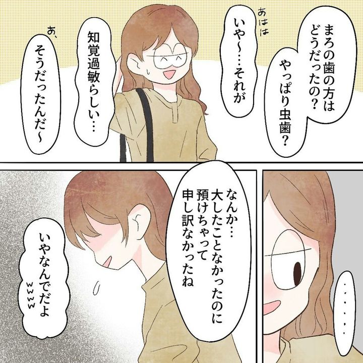 歯医者に行った結果、歯の痛みの原因は「知覚過敏」と告げられました。絶対に虫歯だと思っていた まろさんは、拍子抜けしてしまいます。