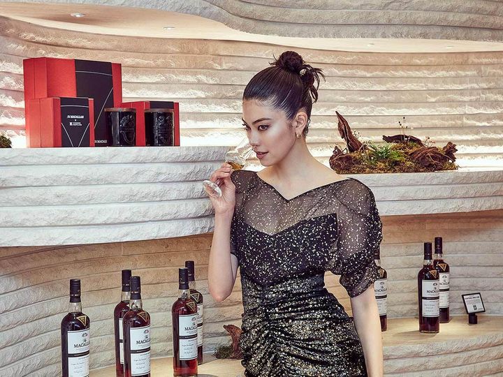 森星さんは「この香港の旗艦店では、200周年を迎えた“マッカラン”がどのような歴史を歩んできたかということを知り、とても特別で贅沢な時間になりました。ザ・マッカランは伝統とイノベーションがコンセプトと聞いていたので、祖母がつくった1980年のドレスを選びました」とコメント。