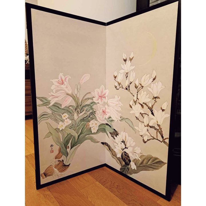 習い始めて18年の日本画。屛風はいちばんの大作です