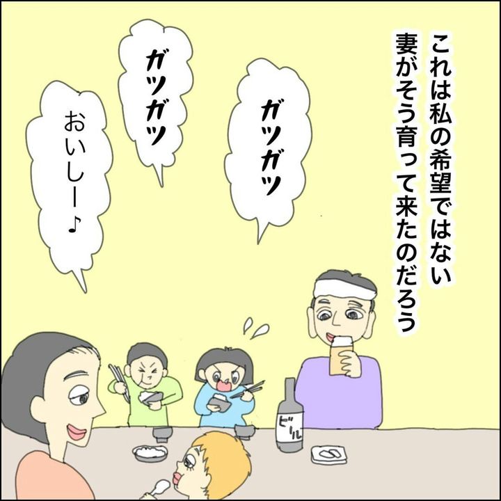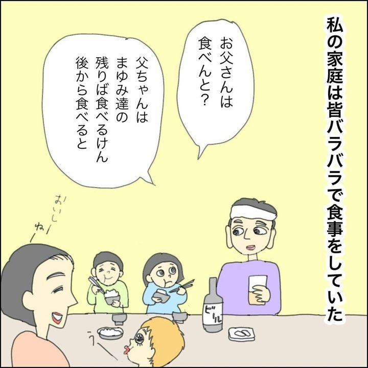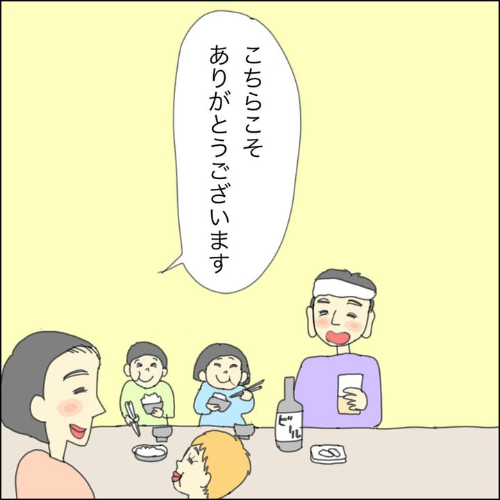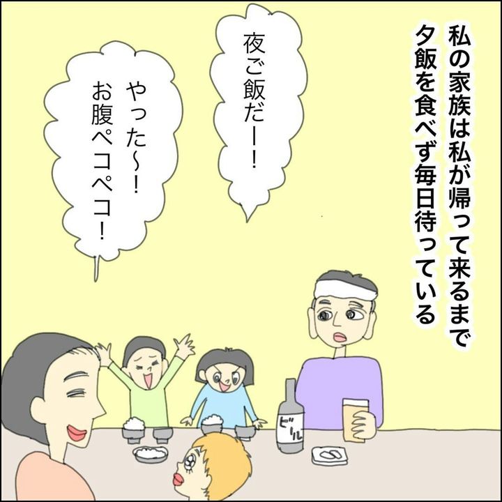 家族で食卓を囲む毎日、とても幸せな光景ですね。さらに、夫婦で「ありがとう」と感謝し合う姿も素敵です。とてもほのぼのとした日常ですが、ある日突然、変化が訪れます…。