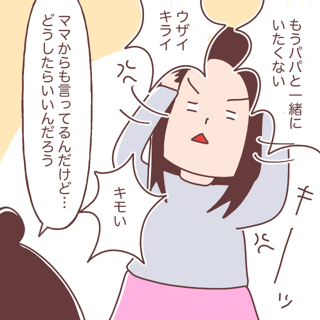 「キーッ!!もうパパと一緒にいたくない!ウザい!キライ!!キモい!!」