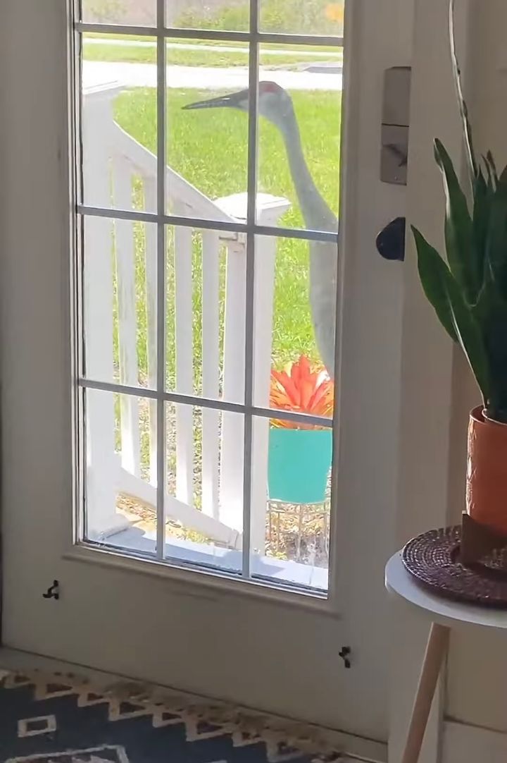 むしろ女性は、「カール!見えてるわよ」なんて親しげに話しかけるのです。 するとカールと呼ばれたこのカナダヅルは、ドアを何度も叩いてアピール。