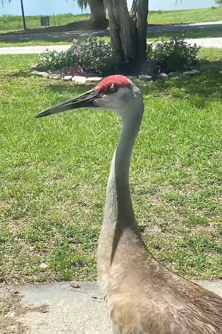 その正体は、なんとフロリダ州に生息する野生の鳥「カナダヅル」です!!