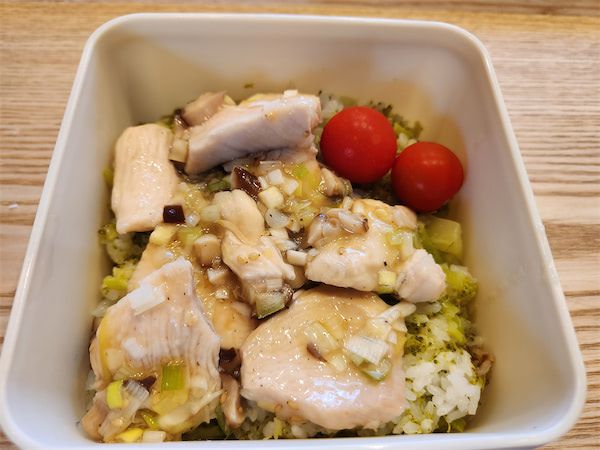 さっそく冷凍する前の「鶏胸肉のネギ塩だれ弁当」を食べてみましたよ。