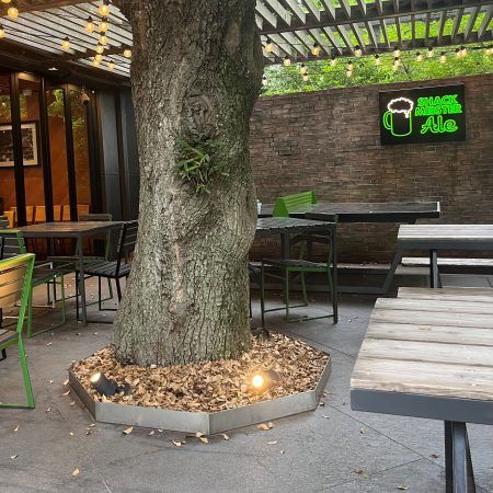 外苑いちょう並木にあるのが、テラスが広がる日本一号店です。ニューヨークのマディソンスクエアパークにある1号店からインスピレーションを受けているのだとか。