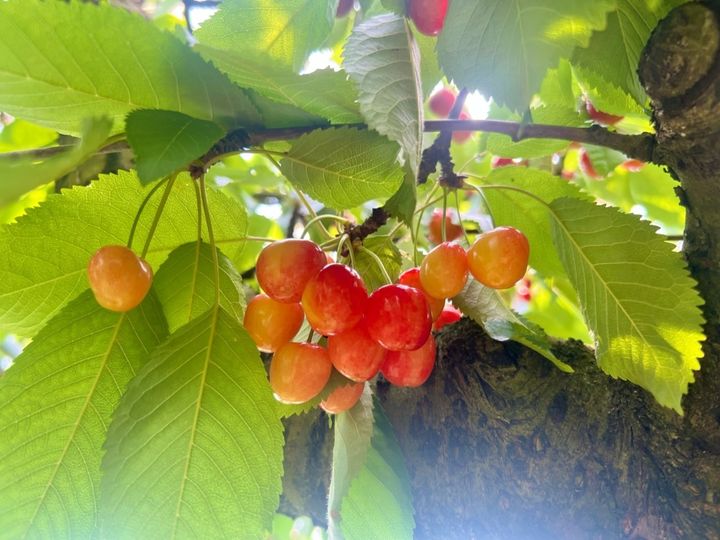 さくらんぼ狩りでは、佐藤錦や紅秀峰、ナポレオン、紅さやかなどの美味しいさくらんぼを食べることができます♪