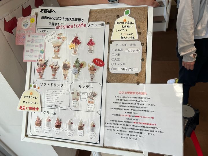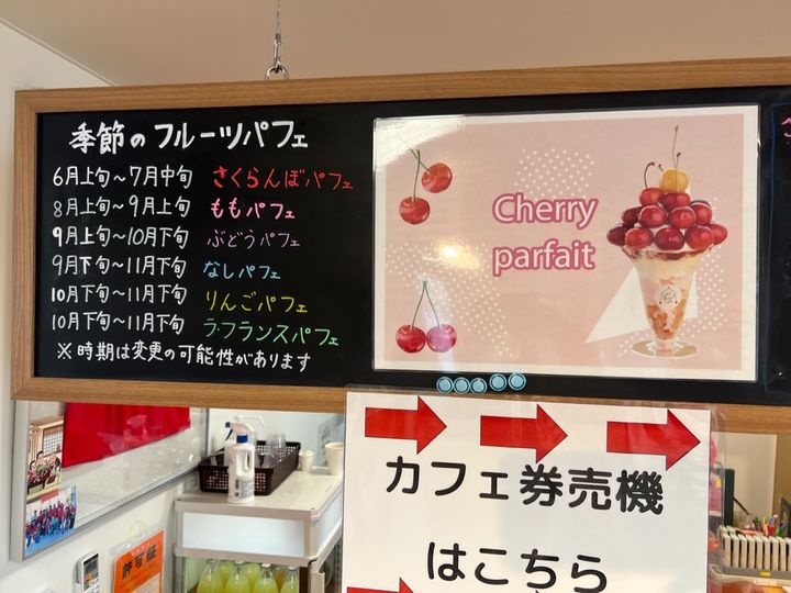 同施設内にあるカフェ「oh!show!cafe」では、旬のフルーツパフェを楽しむことができます!取り立ての果物を使ったパフェだそうです!