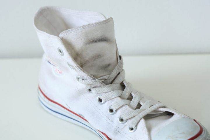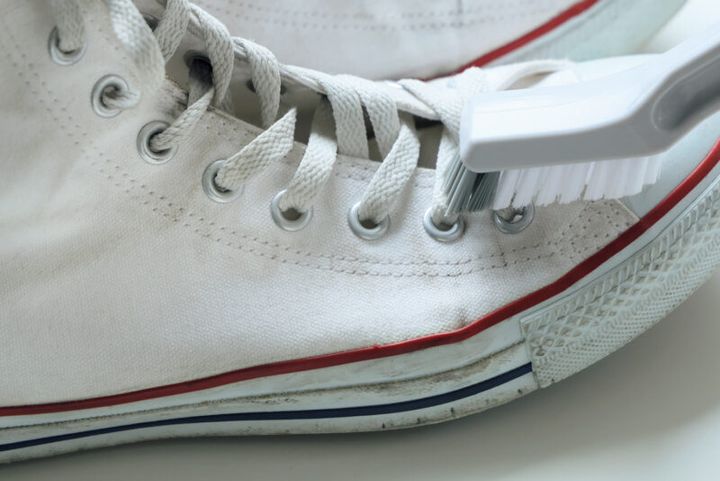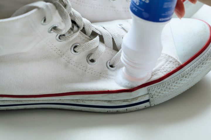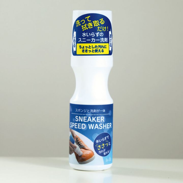 スニーカーウォッシャーのスポンジ部分を、スニーカーの布部分にすりつけます。