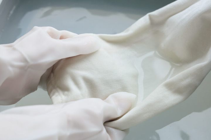 逆性石鹸でつけ置き後、洗濯機または手洗い