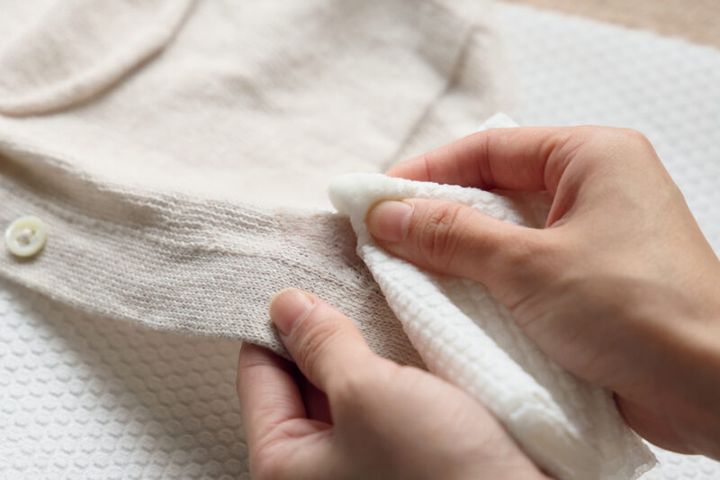 ほかの布に汚れをうつすつもりで、つまんでいきます。