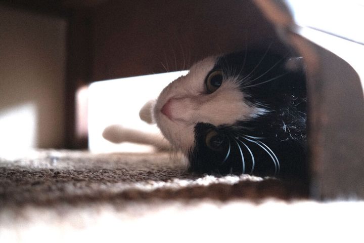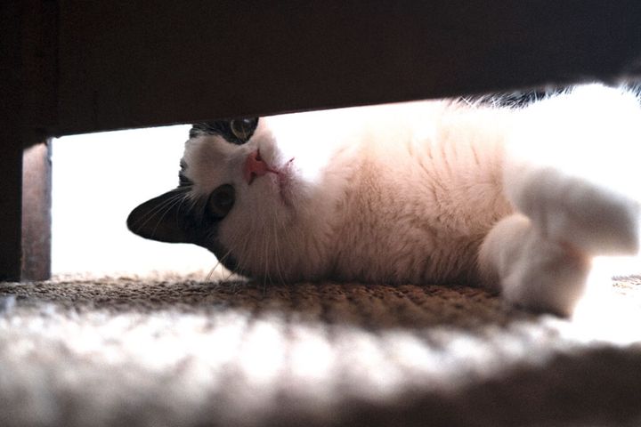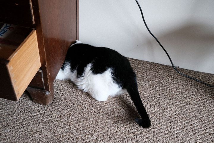 このチェストの下に、小さいときよく入ったのよね〜。久しぶりに入ろうかしらっと……。