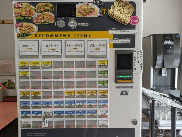 入り口の券売機を見てみましょう。王道のちゃんぽんに加え、ちゃんぽん麺を使用した「太麺皿うどん 太麺」やパリッと揚がった麺にたっぷりあんかけがかかっている「皿うどん バリ麺」など、長崎のちゃんぽん屋さんで見るメニューがずらり。