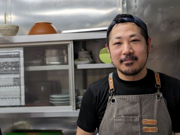 店主の体に対する想いが詰まりまくった1杯を、最後の一滴までおいしくいただきました。 因みにお醤油は熊本県ヤマア醤油謹製の熊本産、九州産の原料にこだわり、自社畑も所有する天然醸造で造られたもの、みりんは三河本格みりん”みねたから”を使用するなど、調味料もとことんこだわっています。 「体に優しいおいしい料理を作っています!」と2代目店主の永江秀一(ながえしゅういち)さん。