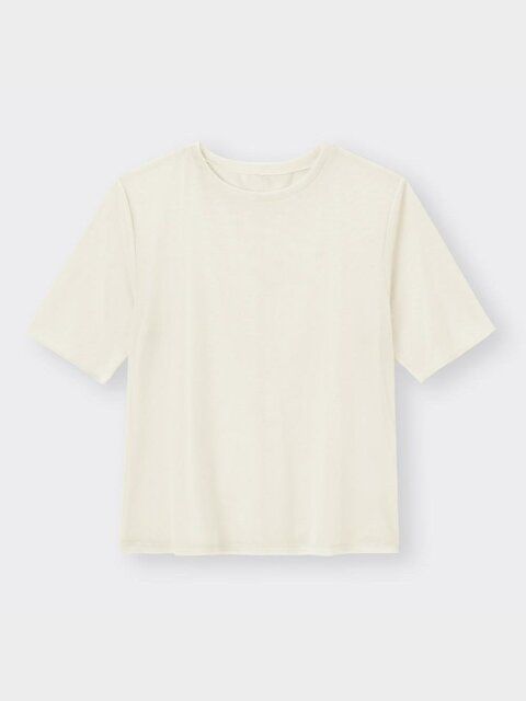 さらっとした肌触りと透け感が快適な着心地を叶えるシアーTシャツ。伸縮性があり体にフィットするので着脱もラクにおこなえます。長めの半袖丈が気になる二の腕を程よくカバーしてくれるのも嬉しいポイントです。