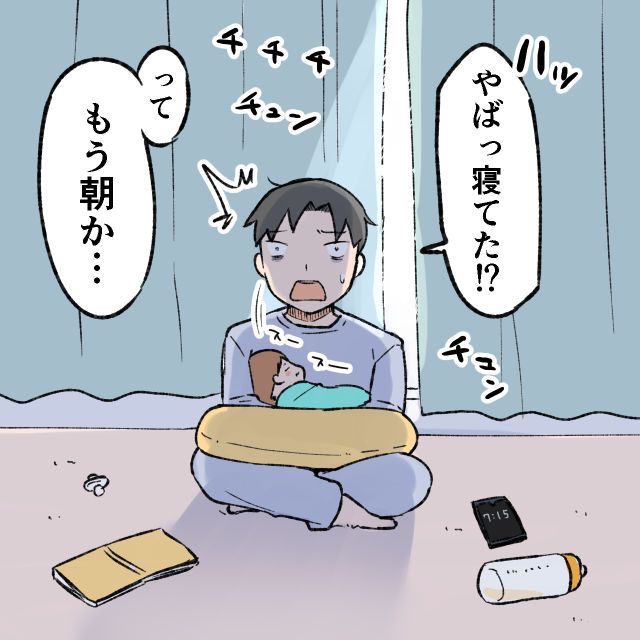 授乳時間の間には2時間寝られると簡単に考えていたパパさんでしたが、実際にはそううまくはいくはずがなく・・・