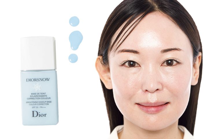 憧れの透明感を手に入れるにはブルー!肌に寄り添う軽やかな使い心地。「くすみや色ムラが一気に吹き飛んで、肌が透き通るような透明感が出て驚きました」(熊谷さん)ディオール スノー メイクアップ ベース UV35 ブルー SPF35・PA+++ ¥7,040(パルファン・クリスチャン・ディオール)