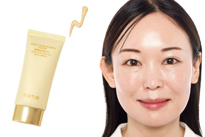 軽いつけ心地でなめらか肌に。ヘアメークさんオススメカラーのイエロー。「黄ぐすみ悩みには同系色のイエロー下地が最適。ベージュ系よりワントーン明るく見せ、クマや鼻周りの赤みも目立ちにくく。フラットな肌状態に導きます」(このみさん)マスクフィット トーンアップ クリーム YELLOW SPF50+・PA++++ ¥2,420(ティルティル)