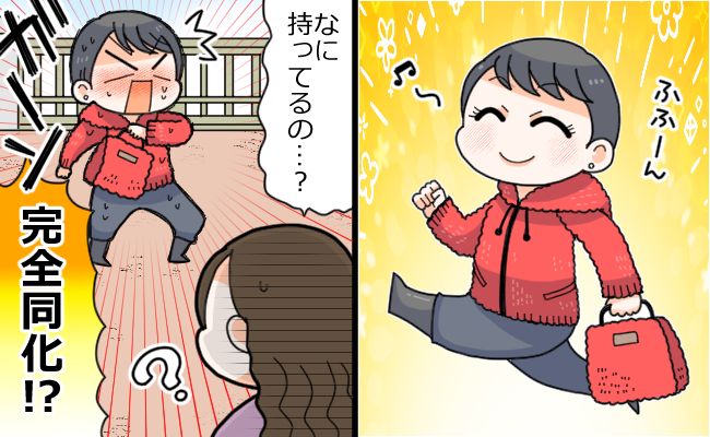 すると、ママ友が近寄ってきて、不思議そうな顔をしながら「何、持っているの……? あ~バッグを持ってたのね! 遠くからだと同化していて何を持っているのかな?って目を細めちゃった」と言われ、ハッとしました。
