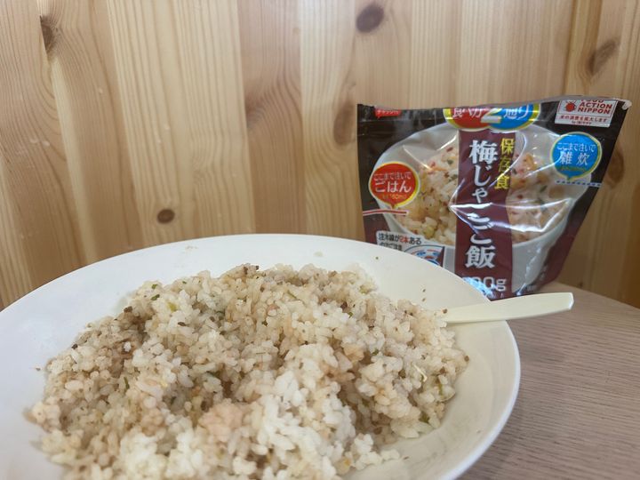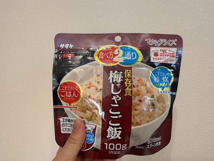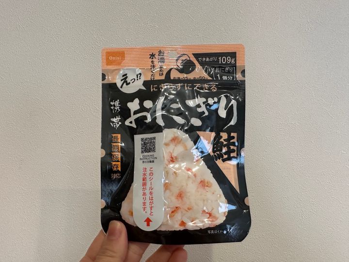 鮭とワカメの2種類の味があったのですが、どっちもすごく美味しかったようで、非常食を全部食べ終わった後も「あのおにぎり食べたい!」というほどでした。
