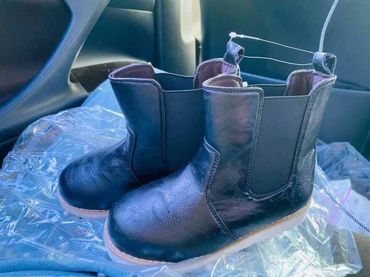 黒のサイドゴアブーツ。うちは一応娘用に買ったけど、息子が履くなら履かせてもいいかな