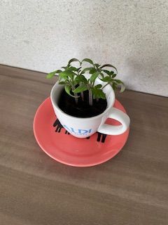 まず、もらってきた栽培キットは種から植えるものだったので、芽が出るまでは小さなお皿とカップで1.2週間育てました。