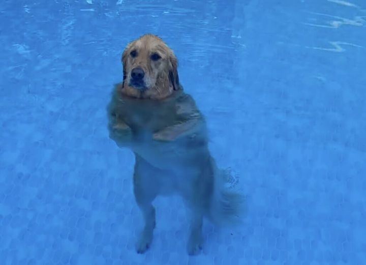 プールで遊ぼう? 飼い主を誘う姿が可愛すぎるゴールデンレトリバーさん。